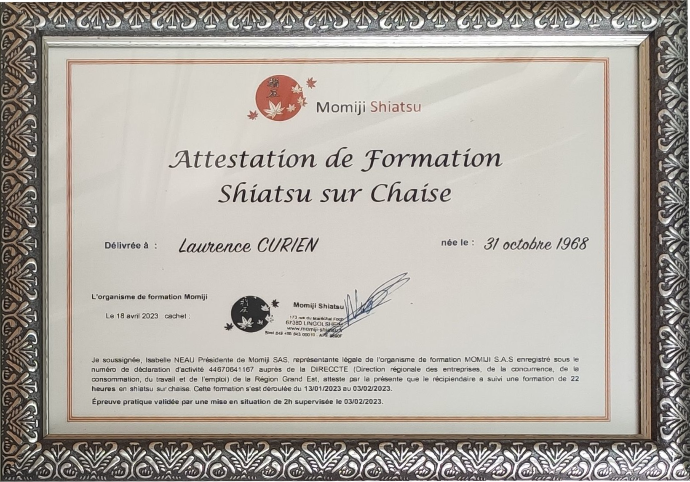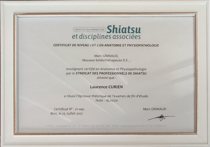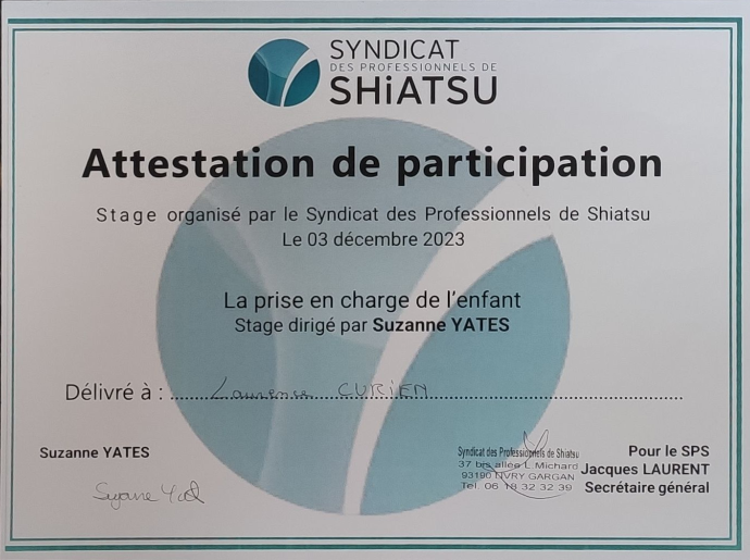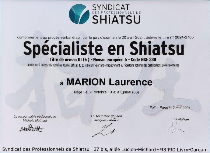 Mai 2024 : Diplômée spécialiste en Shiatsu