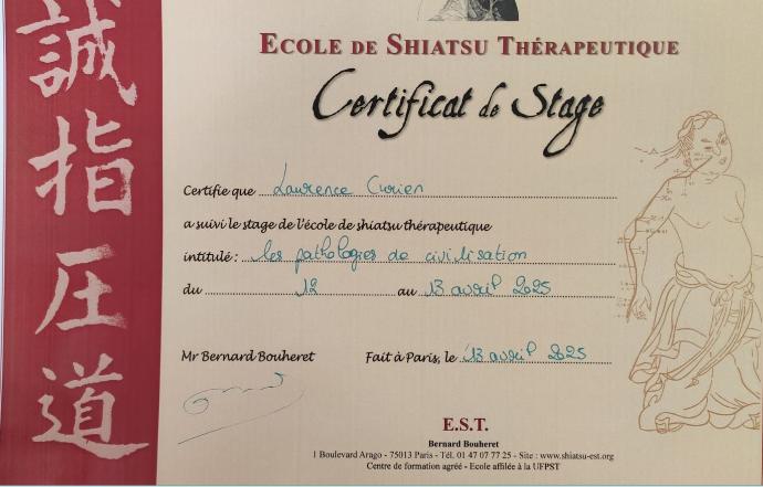 Mai 2024 : Diplômée spécialiste en Shiatsu