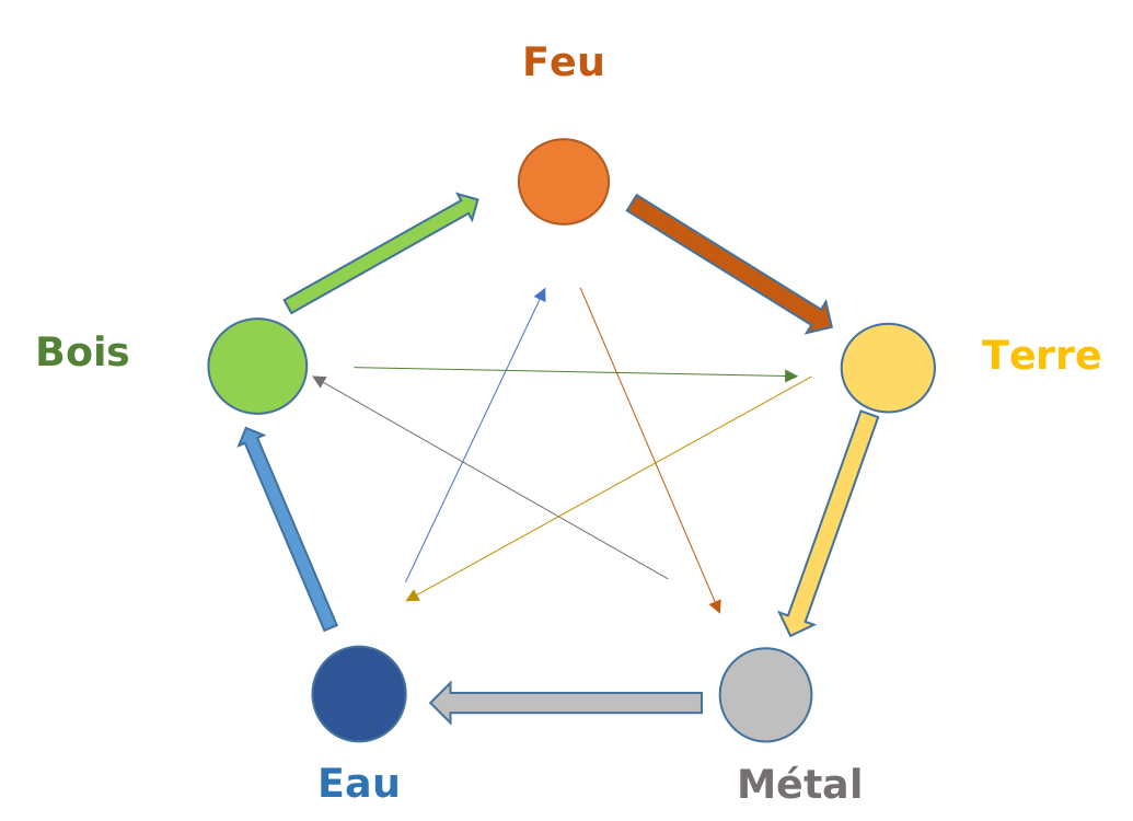 Le Shiatsu s’articule autour des 5 éléments correspondant aux mouvements de l’énergie de la nature. Chaque élément en lien avec une saison, s’associe à un organe et à une entraille.